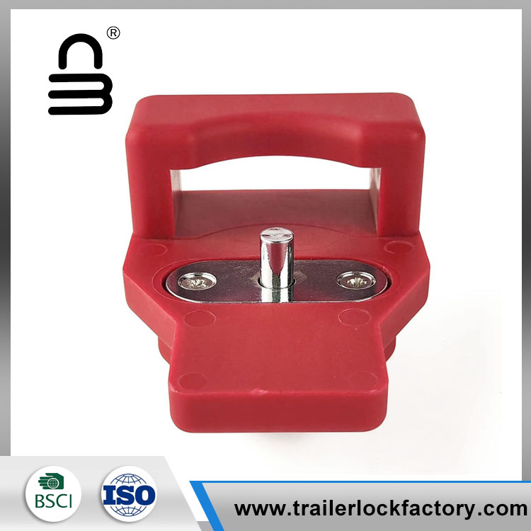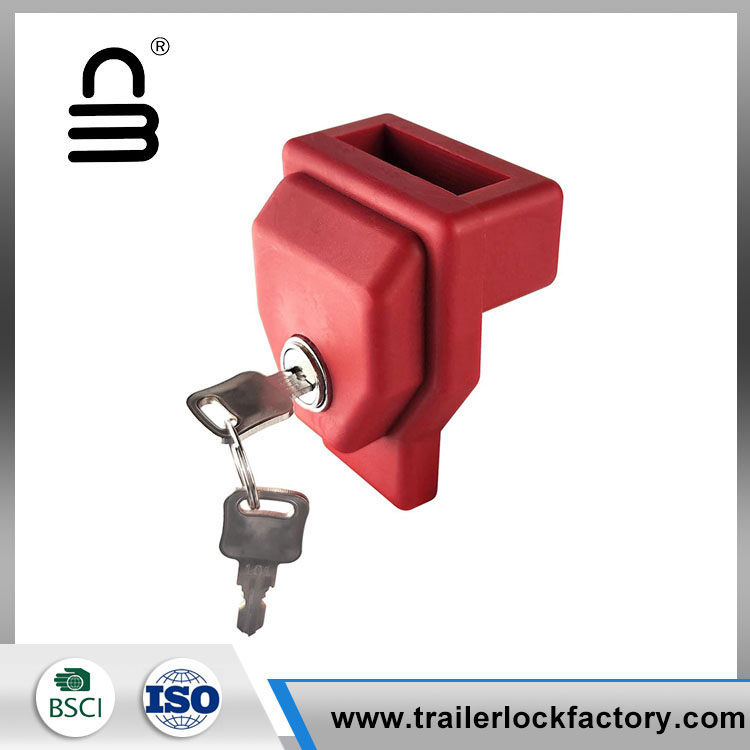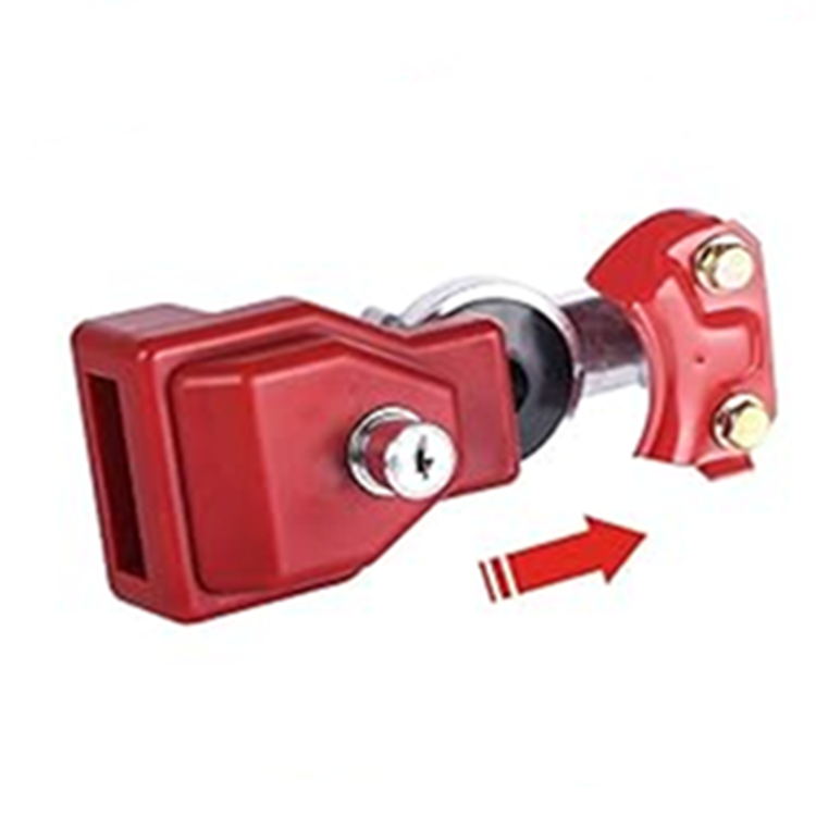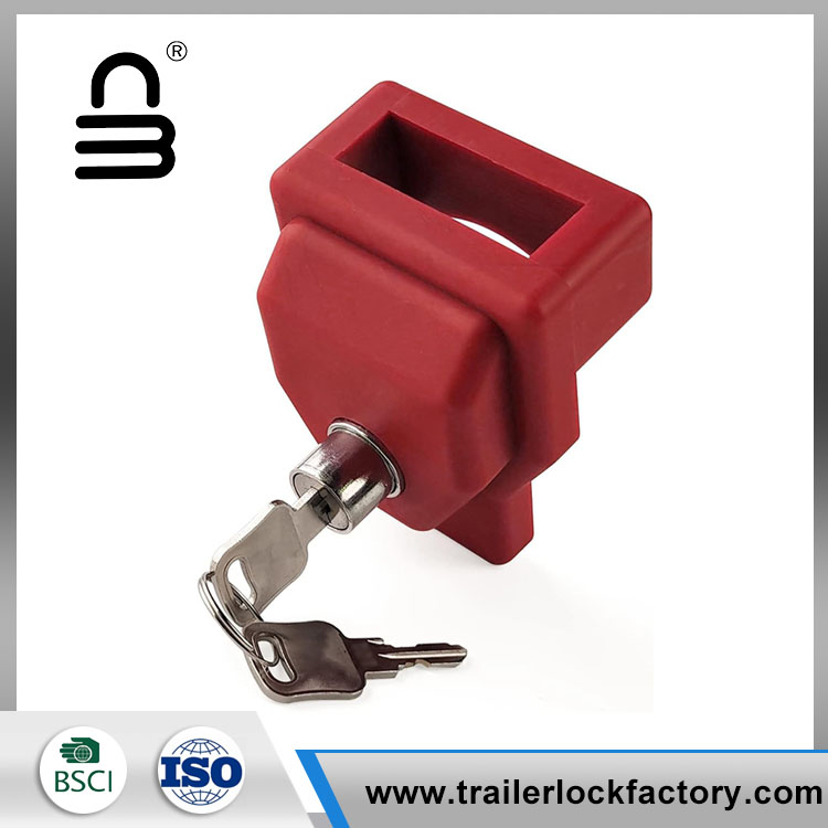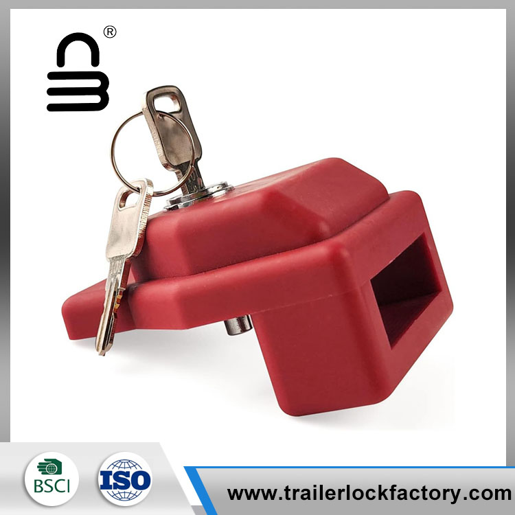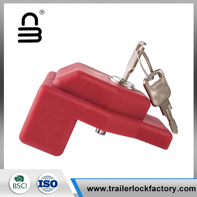 Glad Hand Trailer Lockout बिल्ट-इन कुञ्जी लक (एकै किसिमले कुञ्जी राखिएको) संग देखिने रातो प्लास्टिक हो।