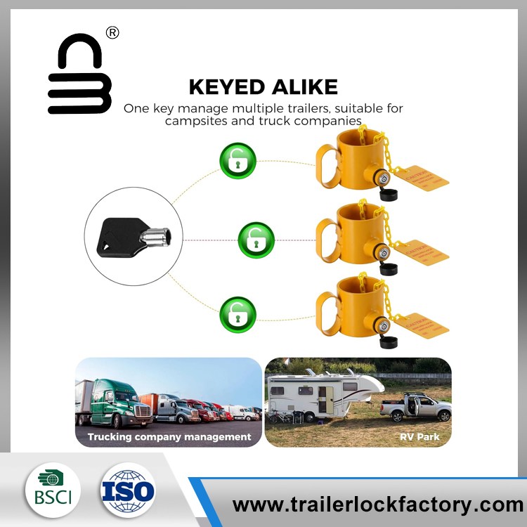 ट्रेलर लक लक लक गर्नुहोस् भारी शुल्क स्टिलएलओओएलओओएलओएन् किन पान लकले अनमोच गरिएको ट्रेलर आन्दोलनलाई 5th औं व्हीलबाट रोक्दै चोरी गर्दछ। लक संलग्न भएपछि ट्रेलरको लागि ट्रेलरको लागि शारीरिक रूपमा असम्भव छ, स्टिक लक कुल सुरक्षाको लागि सम्पूर्ण राजा पिन कभर गर्दछ।